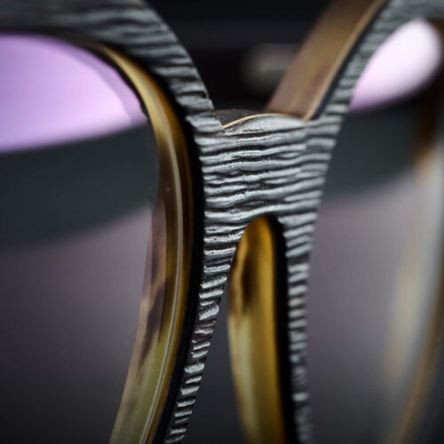 Unsere Holzbrillen bestehen aus bis zu zwölf zusammengesetzten Holzmaserungen, die gekreuzt zueinander geklebt werden, um genügend Stabilität zu garantieren. Die Bügel fertigen wir aus Naturbüffelhorn und können optimal an den Kopf angepasst werden.