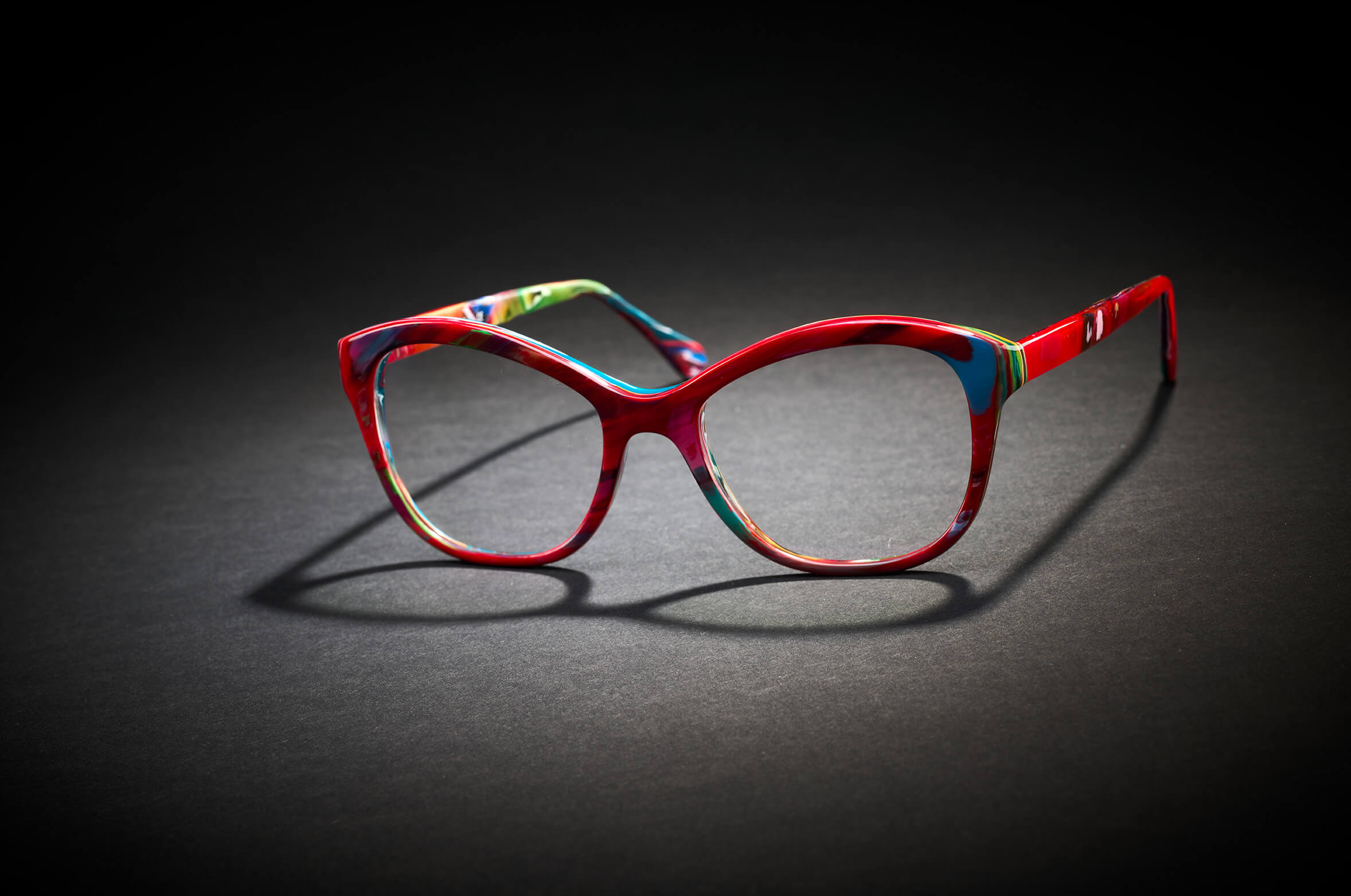 Brillen gefertigt aus den Sägeabschnitten unserer Kunststoffbrillen-Produktion. Absolut einzigartige Farbgestaltung. Jede Brille ein Unikat!